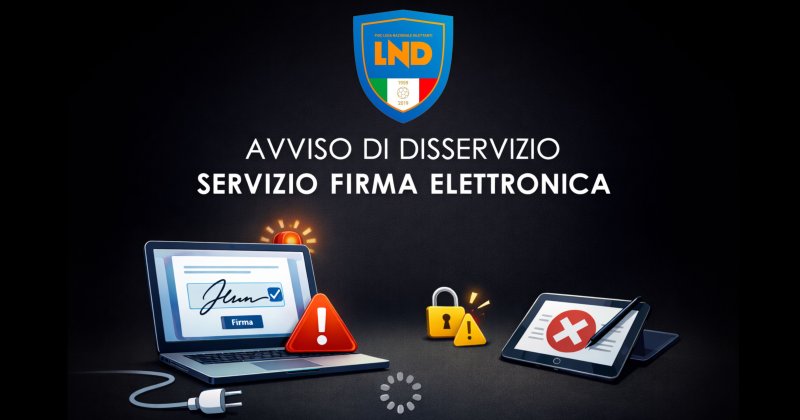CAUSA AGGIORNAMENTO DEI SISTEMI DI MARCA TEMPORALE, IL SERVIZIO DI FIRMA ELETTRONICA, SUL PORTALE LND, NON SARÀ DISPONIBILE NELLA NOTTE TRA SABATO 21 FEBBRAIO E DOMENICA 22 FEBBRAIO 2026.